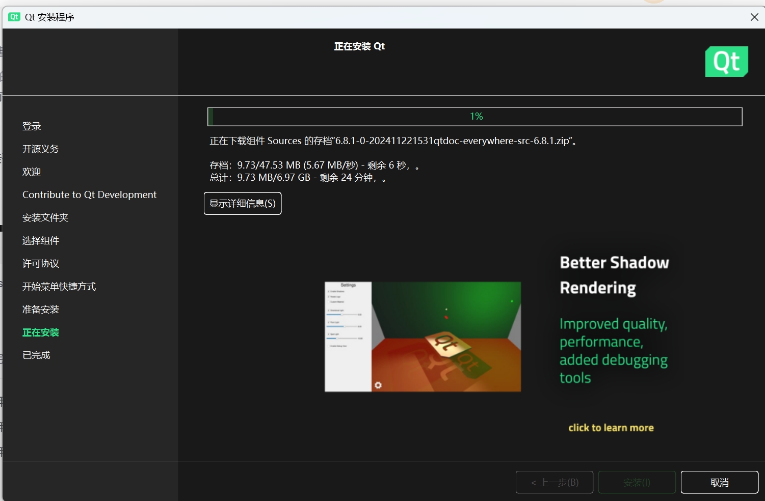 开始安装,输入自己的qt账号,进入qt在线安装界面